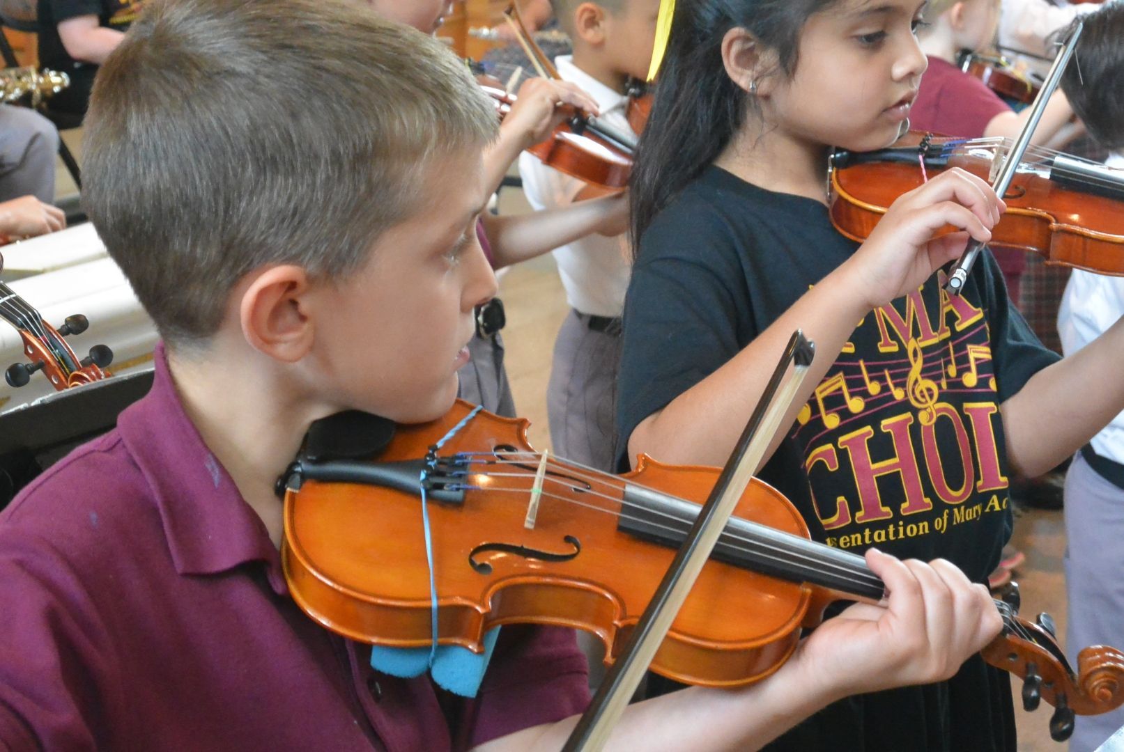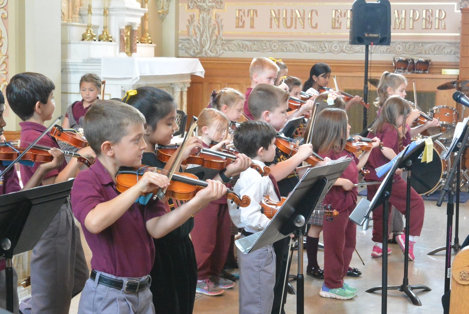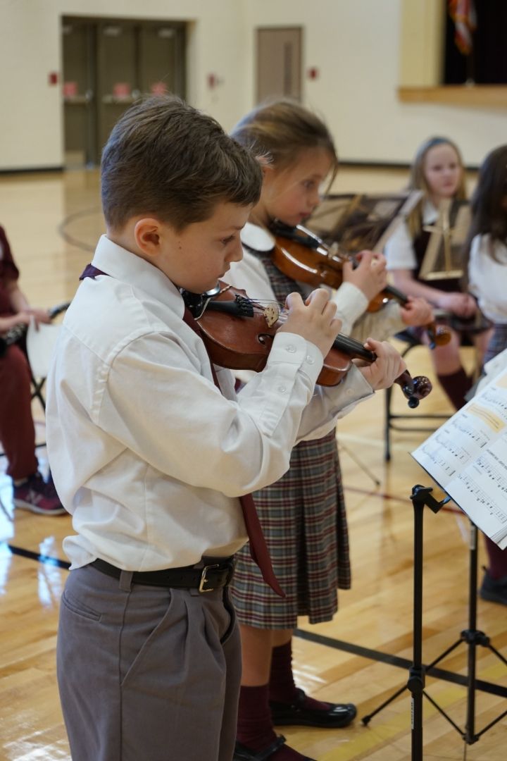 The PMA band is an opportunity for all our students in Kindergarten through eighth grade. Instruction is provided by the Paul Effman Music Service. We have a variety of instruments available such as the violin, trumpet, saxophone, drums, just to name a few. Band members practice weekly with Paul Effman instructors and prepare for the end of the year spring concert. Select band members are asked to perform in the Christmas concert as well. Students are given the opportunity to rent or purchase their instruments.